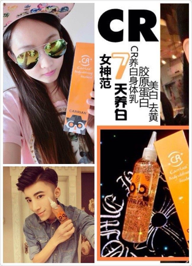 ❤ 3. Hapuskan kulit kering, gatal dan sensitif. Disebabkan oleh perubahan cuaca, kekurangan kelembapan akan menyebabkan badan kering dan masalah gatal; menggunakan losyen badan ini menghapuskan awal masalah gatal kering, memperbaiki kulit dengan sempurna. CR Losion Badan (Carrian) Whitening Body Gel Ciri-ciri yang tersedia untuk pemutihan Store Members CR darah badan oren Essence / Badan Lotion✦ ✦ ✦ ✦ Carrian Essence Putih penerbangan terus dari Hong Kong produk Diperlukan untuk musim panas! Memberi pemutihan dan menghidratkan dalam masa yang sama. Pemutih badan, produk serba boleh mencerahkan kulit, muka, badan, bahagian dalam paha, ketiak, punggung, paha, pemutihan bukan mimpi! Kulit lut putih - bahan-bahan sederhana dengan No merkuri dan unsur-unsur berbahaya! Anda boleh melihat hasil dari hari ke-4 dan seterusnya, bermula dengan putih lut. Terus mengambil selama 3 bulan, hasilnya sama dengan kotak pemutihan jarum. Terus diam-diam menggunakan masa 3-4 bulan, putih lembut kekal! Diuji oleh standard EU! Pemilihan pelbagai bahan pemutihan untuk mengurangkan sintesis melanin untuk badan. Lut kulit, matte, lembut halus dan lembut! Enggan liang tersumbat pada kulit. Tiada hormon, tiada bahan-bahan semula jadi beracun; berkesan membaiki sel-sel yang rosak, terus ke lapisan kulit, kesan penghidratan kuat, mengurangkan pigmen, mengurangkan garis-garis halus, jerawat, mengeluarkan kemerahan. Selamat digunakan untuk wanita hamil, kanak-kanak boleh yakin dengan produk, hanya satu badan dan produk pemutihan muka boleh digunakan! Produk ini adalah mudah untuk digunakan, mudah untuk membawa dan mudah untuk melihat kesan! Yang paling penting ialah bahan-bahan yang selamat, penggunaan untuk kedua-dua badan dan muka, 7 hari pemulihan, penggunaan berterusan untuk hasil yang lebih baik!